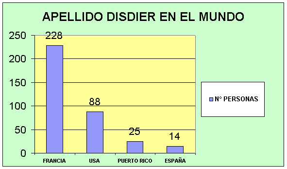 In Spain and Puerto Rico, they are not including the people who they have as second Disdier surname. NOTE: In the previous statistic it can be about 10% - 15 % of error because that has been stracted of a single source of information.