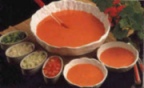 PARA 1/2 LITRO Lavar los tomates, triturarlos junto con los demás ingredientes y colar después si se desea. (Se sirve con patatas cocidas, huevos duros, judías verdes, carnes).