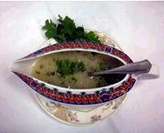 3 huevos duros Se echa el aceite en una cazuela, y cuando esté caliente se van echando las patatas partidas en cuadraditos. A continuación se agrega el ajo machado, el laurel, el perejil y la sal, junto con las yemas de los huevos machacadas en el mortero. Se añade aproximadamente 2 litros y medio de agua y se ponen a hervir a fuego lento. Sólo tienen que mermar un poco. Luego se pica la clara del huevo duro y se echa por encima, estando listas para servir. (Se puede añadir cuadritos de pan frito por encima) NOTA: En tiempos de escasez era un plato de bodas en la provincia de Salamanca.