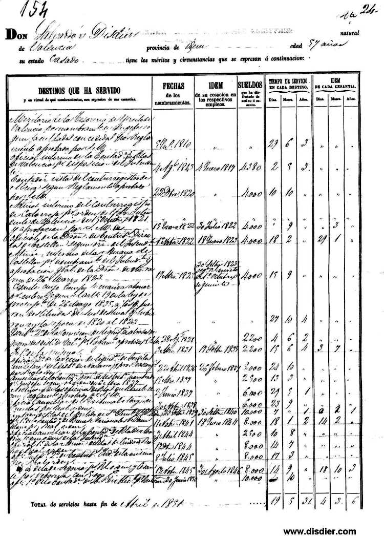 SALVADOR DISDIER 1795 (VALENCIA) Esta página contiene parte de las actividades profesionales de los primeros miembros conocidos con este apellido y antecesores míos, todo ello basado en documentos encontrados recientemente por diversas vías, y usados como única fuente de información disponible, y que ni siquiera mi padre tuvo conocimiento de tales legajos ni de las actividades de nuestros antepasados. Este pequeño trabajo recopilatorio quisiera dedicarlo a su memoria, ya que siempre tuvo curiosidad de la procedencia en España y extranjero de este apellido, y nunca pudo llegar a conocer lo expuesto en esta página. No se ha pretendido publicar ningún hecho relevante ni historiales ostentosos, simplemente se ha recopilado lo que consta en los citados documentos y mostrar lo que en ellos se refleja. Si la difusión de esta página sirve para obtener más información sobre este tema genealógico (como de hecho la ha habido), me daré por inmensamente satisfecho y eternamente agradecido. También hay una pequeña referencia de los acontecimientos históricos sucedidos durante la fecha y el periodo de los escritos.