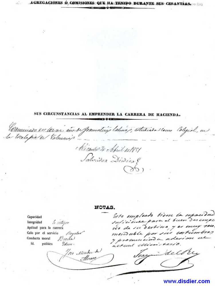 de Noviembre de 1847![]() Servicios Especiales en la carrera de Hacienda |